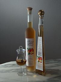 Mein Apfelbrand wird aus sortenreinen Äpfeln gebrannt und nach der Destillation im Eichenfass gelagert. Dabei bekommt er die braune Farbe und sein typisches Aroma. Die 48 Vol.% passen zu seinem leicht rauchigen Touch. In Frankreich wird er sehr gerne als Digestiv zusammen mit einem Stückchen Zucker getrunken. |